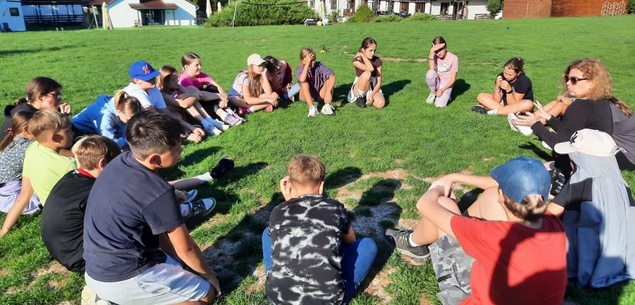 Odpolední program byl hlavně o seznamování a spolupráci: pavučina, závody, hry s míčem i velký týmový úkol – „uzel kolem stromu“. Mezitím jsme zvládli ubytování, vybalování a povlékání postelí (ano, všichni to dali! 👏).