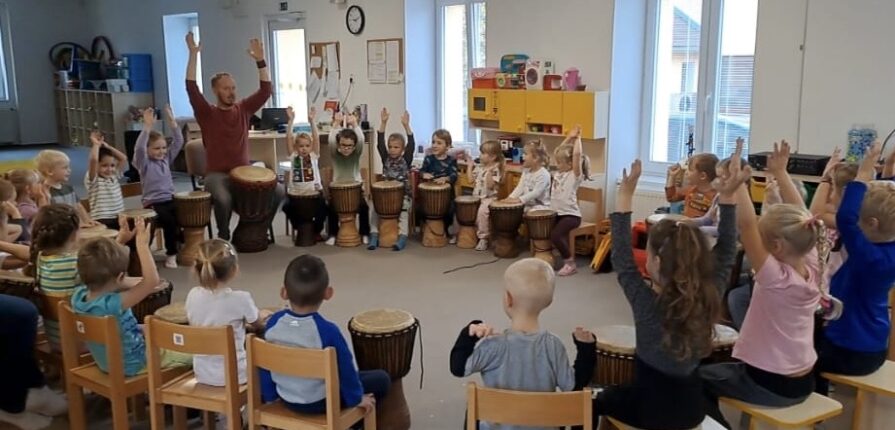 22.10.2024 naší školku navštívil bubeník pan Havlan, který se naučil bubnovat v Africe od místních domorodců. Každý malý bubeník si vyzkoušel jak se hraje na africký buben. Dle pokynů děti i paní učitelky bubnovaly do rytmu a učily se sjednotit rytmus se skupinou. Bubnování bylo pro všechny velká zábava.