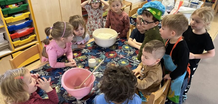 Na 15. 2. 2024 jsme si s dětmi naplánovaly pečení masopustních koláčků. Začalo se kváskem, děti pozorovaly jak “roste”, poté se aktivně zapojily do přidávání ingrediencí a míchání/hnětení těsta, nakonec smíchání surovin na náplně. Přípravy hotové a mohlo se začít tvarováním a plněním koláčků. Všechny děti se s chutí zapojily a mají velkou pochvalu, protože výsledek byl opravdu skvělý a napekly dohromady 51 kusů.